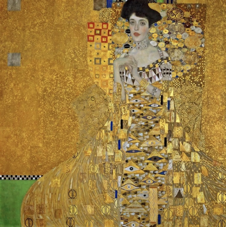 이 작품 또한 키스만큼이나 회자되고 부의 상징으로 현대의 사람들이 집에 걸어 놓기도 한다고 알려진 작품입니다. 실제로 이 작품의 모델인 아델레 블로흐 바우어는 오스트리아의 헝가리를 대표하는 은행들의 금융 감독자의 딸이자 기업가이자 재력가의 아내였습니다. 이렇게 부유한 여성인 아델레 블로흐 바우어는 두 번의 유산과 세 번째 아이의 죽음을 맞이한 사랑하는 아내를 위해 남편인 페르디난트가 클림트에게 제작 의뢰를 하여 작업하게 된 작품입니다. 클림트의 황금 시기의 마지막 작품이다 3년의 시간을 들여 이 작품을 완성하였다고 합니다. 의뢰한 재력가의 부유함을 금 빛과 다양한 장식적 모자이크 표현이 충분히 답변을 해주고 있는 듯합니다. 앞서 말씀드린 여성의 관능적인 표현의 대명사인 클림트는 그녀의 풍요로움과 함께 관능적인 아름다움을 표현하였습니다. 아델레의 오른쪽 손의 장애를 두 손을 맞잡은 포즈로 표현해 내는 섬세함이 클림트의 개성과 함께 따스하게 녹아 있는 작품입니다. 금 빛의 장식 속에서 피어나는 듯한 여성의 대비되는 얼굴과 신체의 표현이 더욱이 그녀를 매혹적으로 보이게 하는 것 같습니다. 클림트의 작품의 매력은 화려한 금 빛 속에 더욱이 돋보이는 인물의 대비된 묘사가 아닐까 하는 생각이 듭니다.