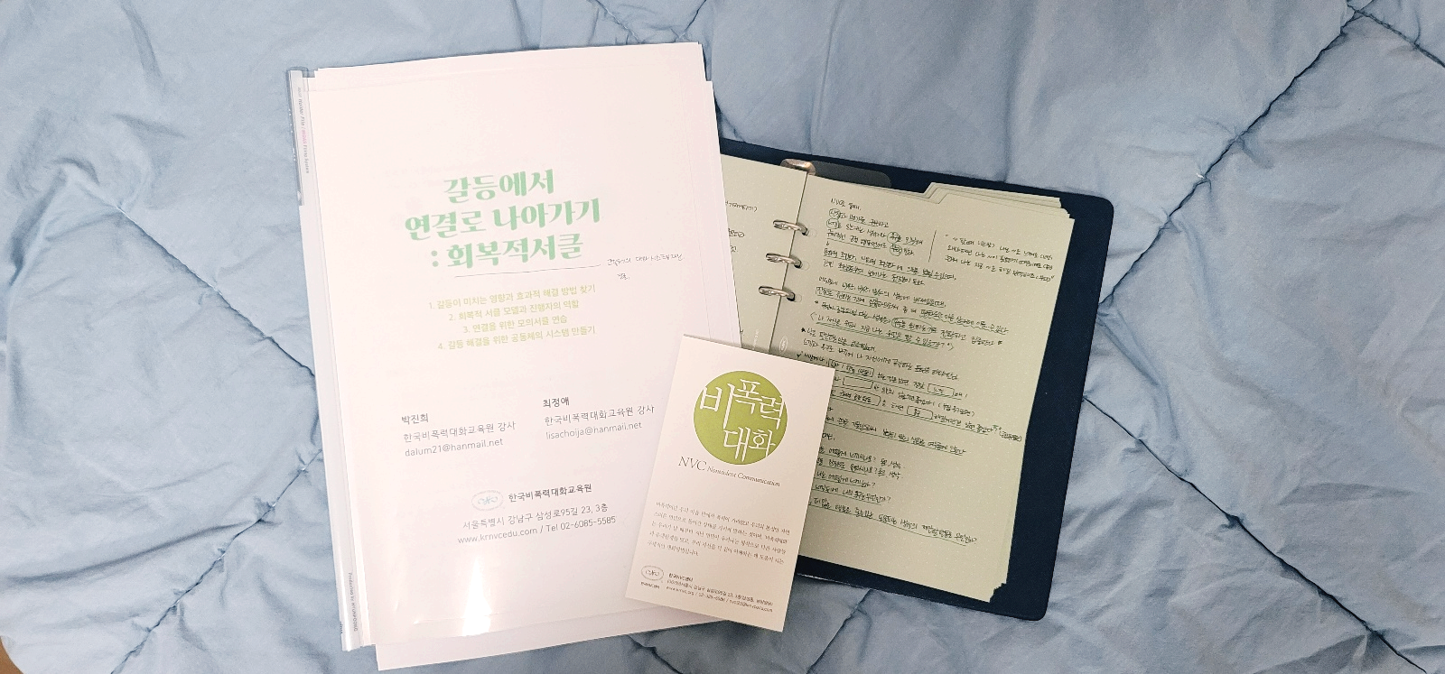 교육 기간 동안 타이밍이 어지 보면 좋았던 내 삶에 정말 감사했다. 책도 교육도 참 매 순간 시의적절하게 선택한 나와 다가와 준 내가 살아가는 이 세상에서 왜 그렇게 울고 저항하며 안간힘을 쓴 것에 마음 아팠다. 그 아픔에 주제는 내가 중요하게 생각한 ‘솔직함’과 ‘존중’이었다. 갈등에서 연결로 나아가는 ‘회복적 서클’ 교육은 갈등을 중재하는 중재자 교육이다. 교육의 관점은 갈등이 아닌 갈등에서 피해 입은 모든 관계자들로 넓혀가는 과정으로 이해하였고 배워갔다. 그 과정의 순간에 나의 중대한 사건도 ‘회복적 서클’에 담아 보았다.