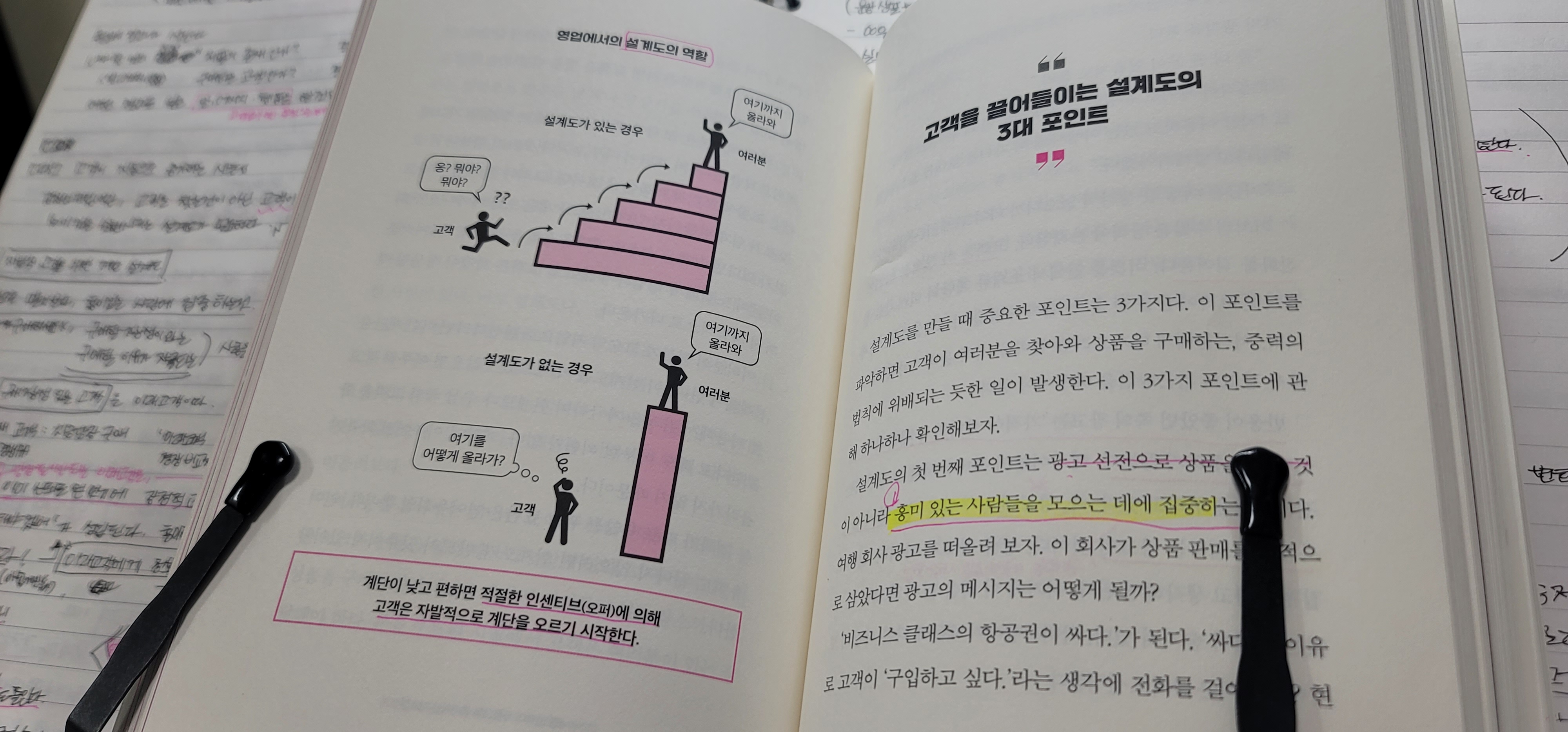 우리가 고객에게 듣게 될 꿈같은 말이었죠? 반면에 우리는 이런 말들을 언제 할까요? 나쁘지 않은(위험하지 않은) 첫인상에 더욱 궁금해지고, 행복한 마음이 충족될 것 같을 때 필요하거나 원하기도 합니다. 안도감이나 즐거움이 충족된 경험으로 다시 보고 싶어질 수 있습니다! 고객도 이런 느낌 가질 수 있게 하는 마법의 장치를 저자는 소개하는데요.