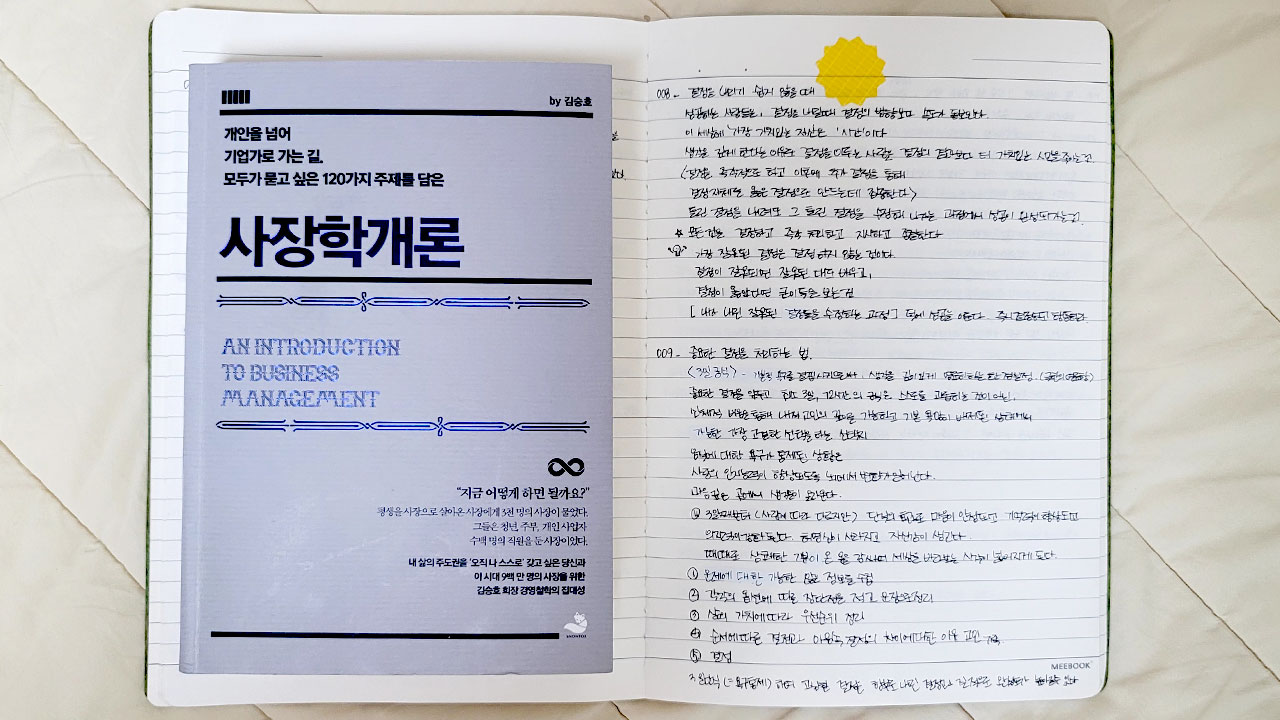 이 포스팅의 유튜브 영상이었죠! 저는 사업가, 사장이 되고 싶기 보다 김승호 회장님의 삶에 대한 관점과 그가 가진 철학에 위로 받기도 하고 질문을 받아 응답하는 그 순간의 생각들을 좀 더 깊이 잡아 두고 싶어 이 책 ‘사장학개론’을 읽게 되었습니다. 그리고 저는 ‘사장학개론’에서 사장의 삶을 보았으며 사람의 삶으로 읽었습니다. 그래서 유튜브를 보면서 잠시 느낀 순간의 위로와 질문들이 지금 제가 살아가는 삶에 대한 위로와 질문임을 더욱이 명확히 느끼게 되었습니다.